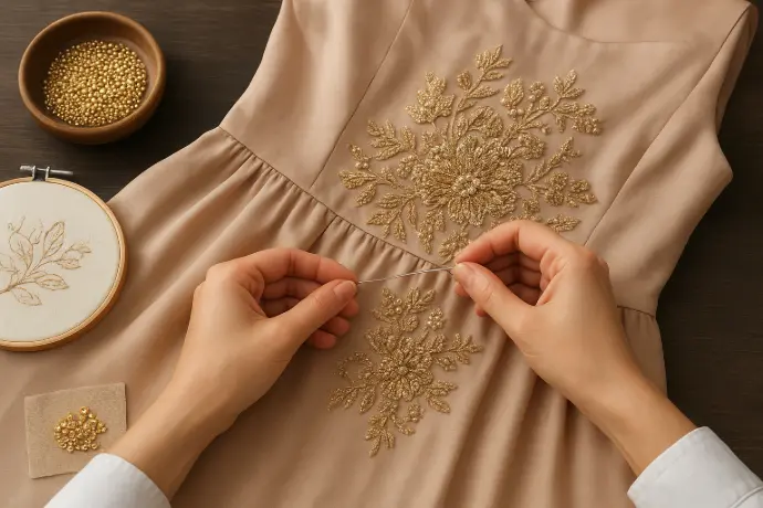 Our handcrafted and machine embroidery services bring sophistication and uniqueness to every garment. From intricate couture detailing to large-scale embroidery production, we combine traditional artistry with modern precision to deliver stunning embellishments that reflect true luxury. Whether on fabric, leather, or specialty textiles, our embroidery work adds elegance and depth to high-end fashion collections.